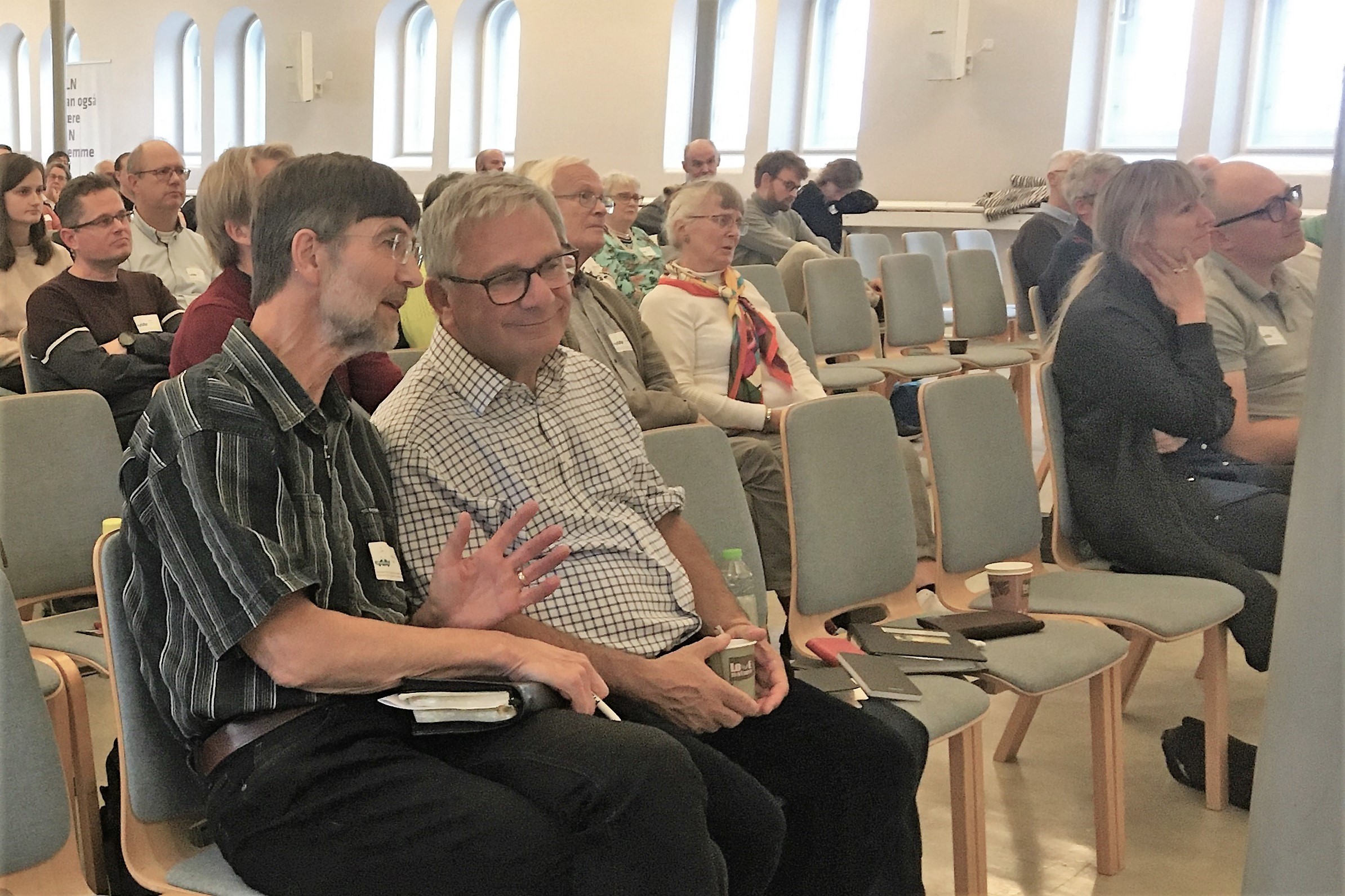 Billedtekst: Niels Jørn Fogh (tv) tolker for Roger Carswell, der var hovedtaler på ELN-konferencen ‘Herre, væk os!’ i København.