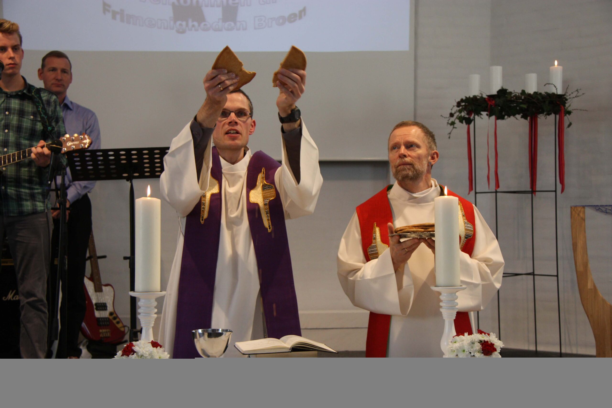 Første gudstjeneste med nadver og indsættelse af Robert Bladt og Sprint som præster i den nye frimenighed.